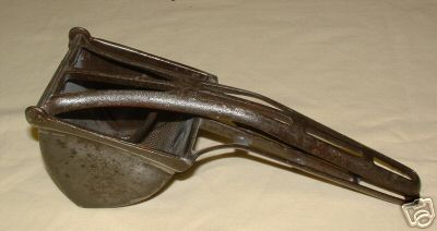 The Henis Press that Inga brought is listed as a ricer on both Google and eBay. That is not right. it is just too fine. So I searched the Digitized Newspapers and it is from 1905 and is a fruit press and came in two shapes. Was in the 1909 papers as well.