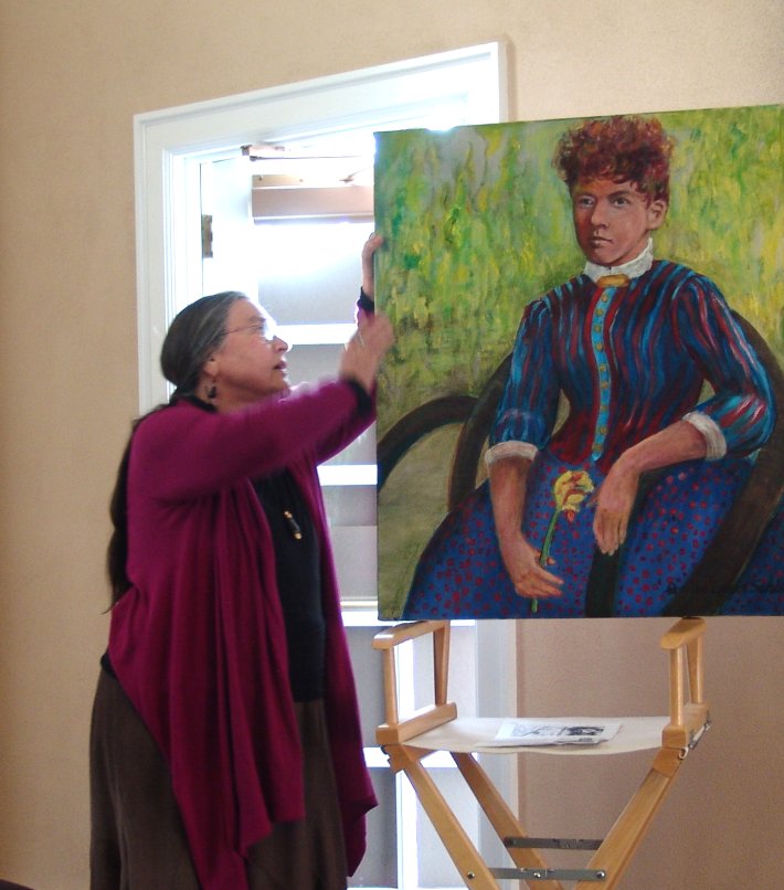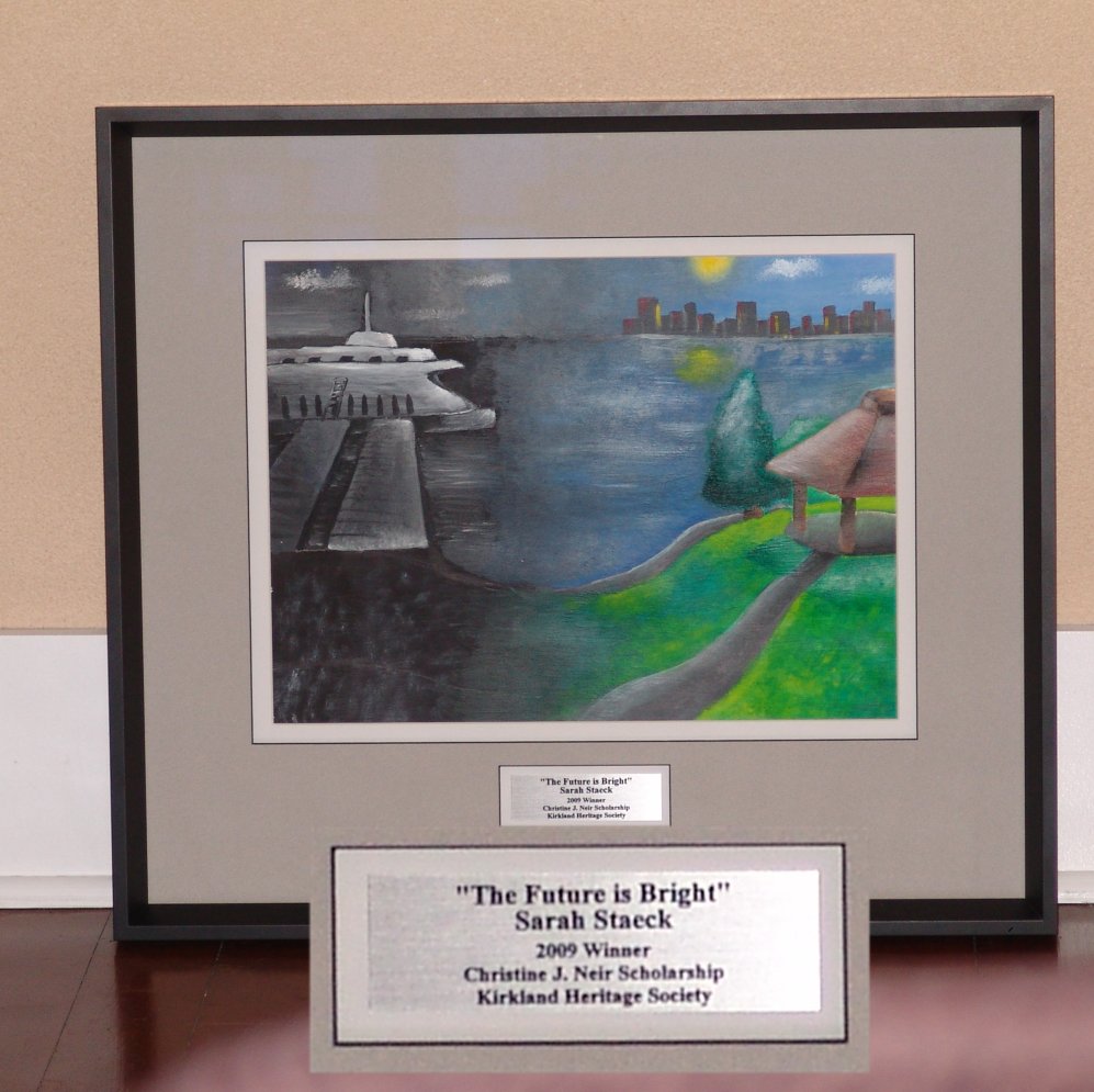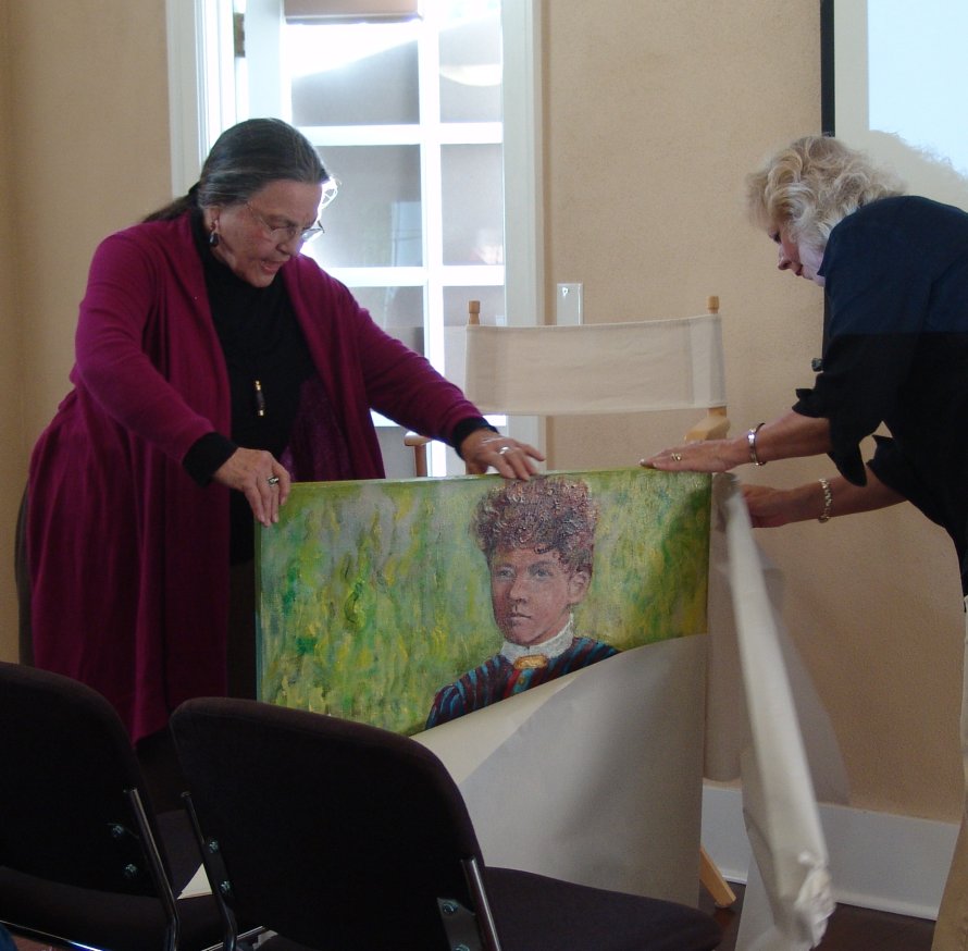 The "Absentee Founder" was Presented by Loita Hawkinson with a Powerpoint Slideshow. Also two paintings were presented. The Christine J. Neir Memorial Scholarship winner Sarah Staeck's painting "The Future is Bright" and Donna Emsel Schill's painting of Peter Kirk's daughter Fanny which came from a project through the Kirkland Art's Center.