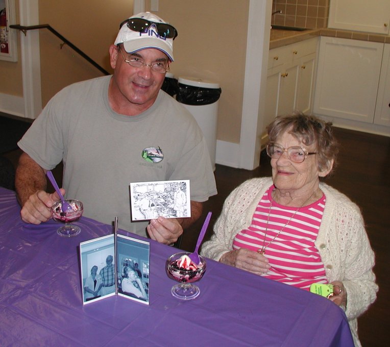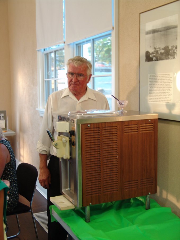 This year we had a special treat -soft ice cream thanks to Fred Stray and his magic machine seen in the pictures. Also we wish to thank the Girl Scout troop for helping with the serving. President Bob Burke covered the highlights of our first 30 years.